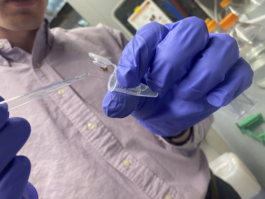 - Apply a drop of PVP with a toothpick or pipette tip to the bottom corners where the two plates meet